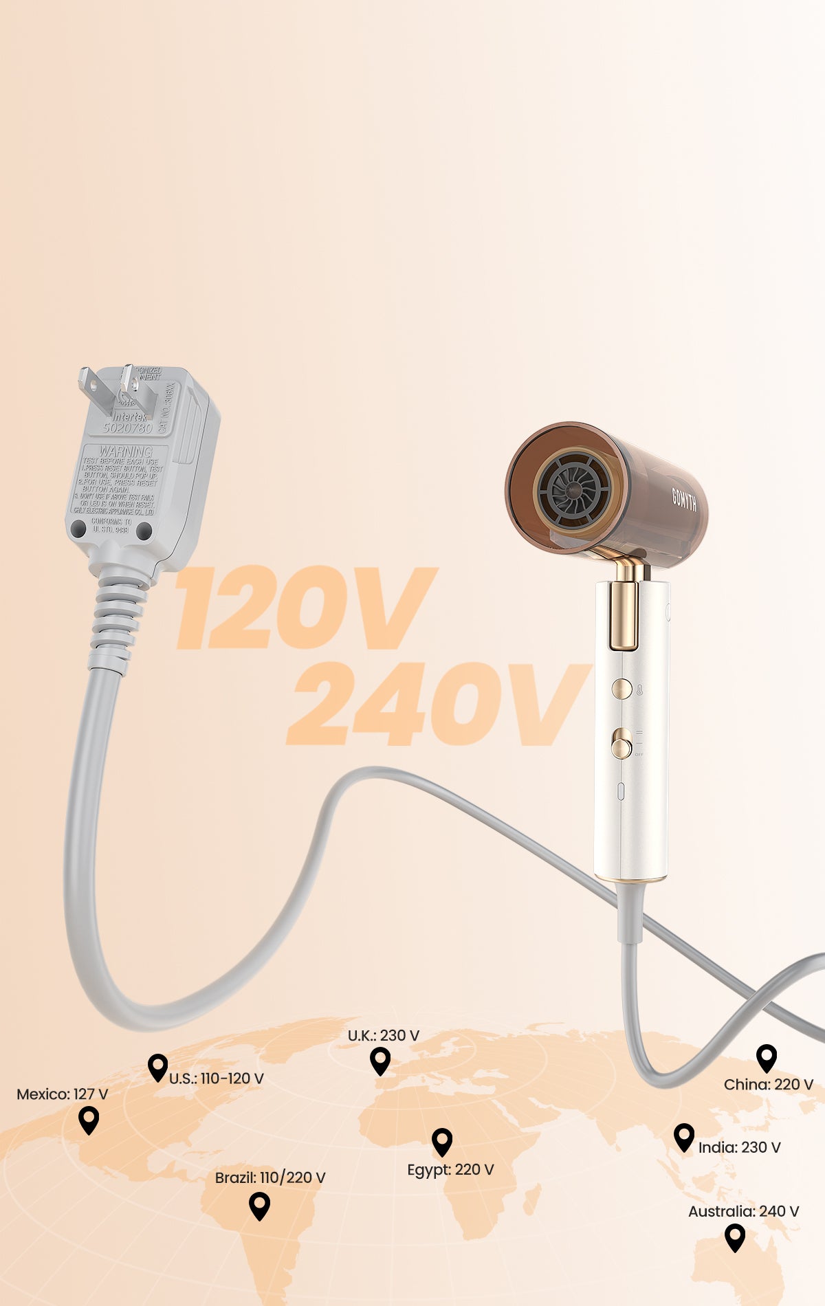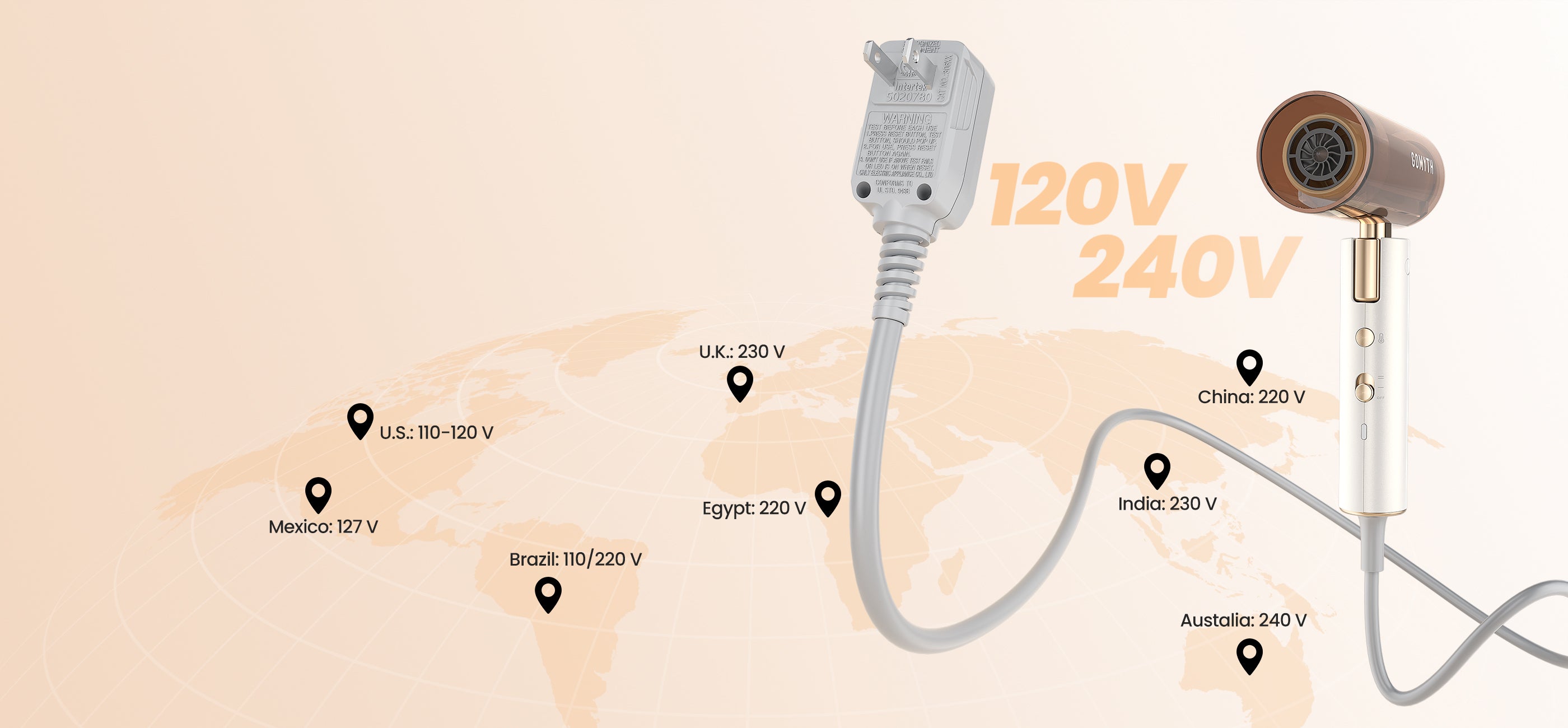 Works with 120–240V outlets worldwide — style with ease wherever you go.