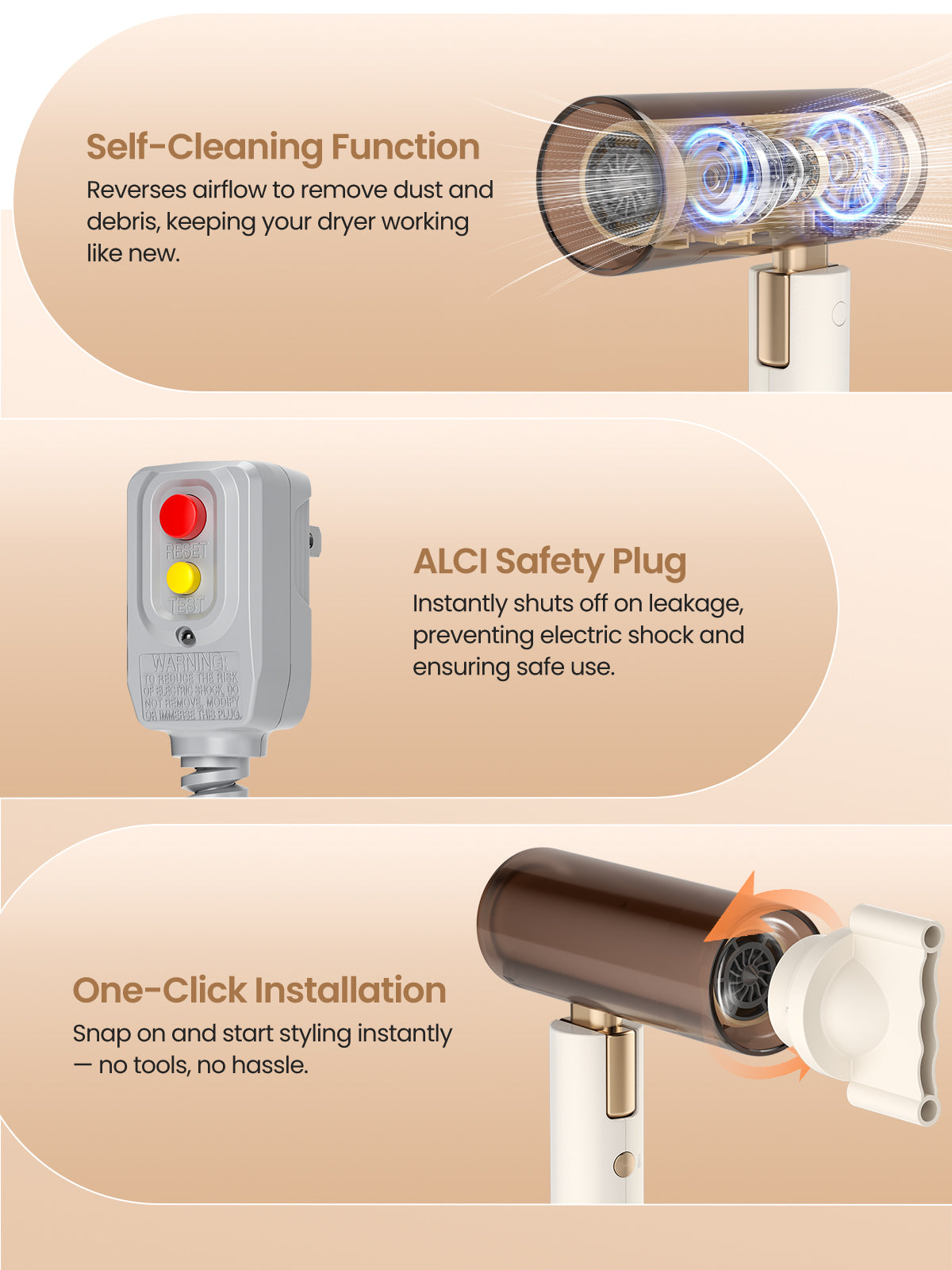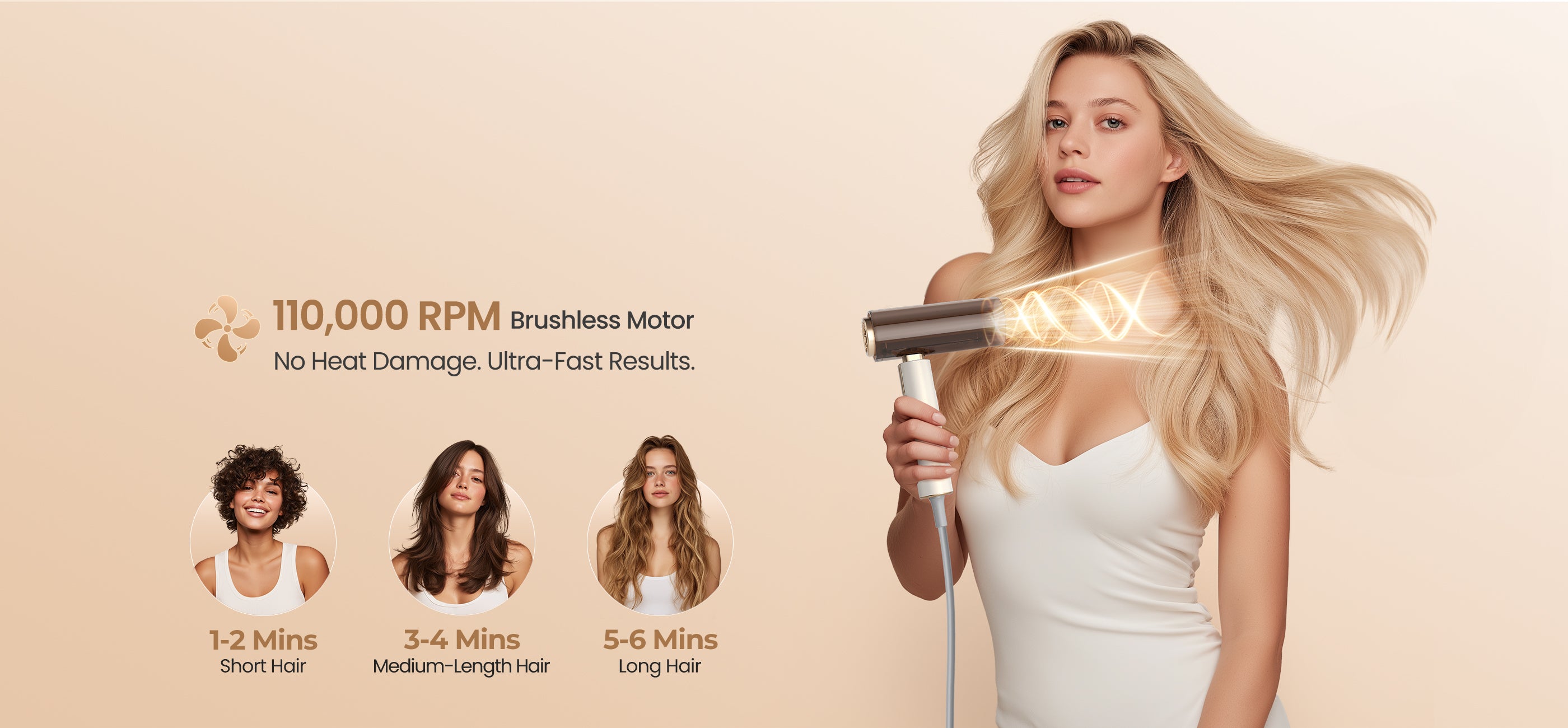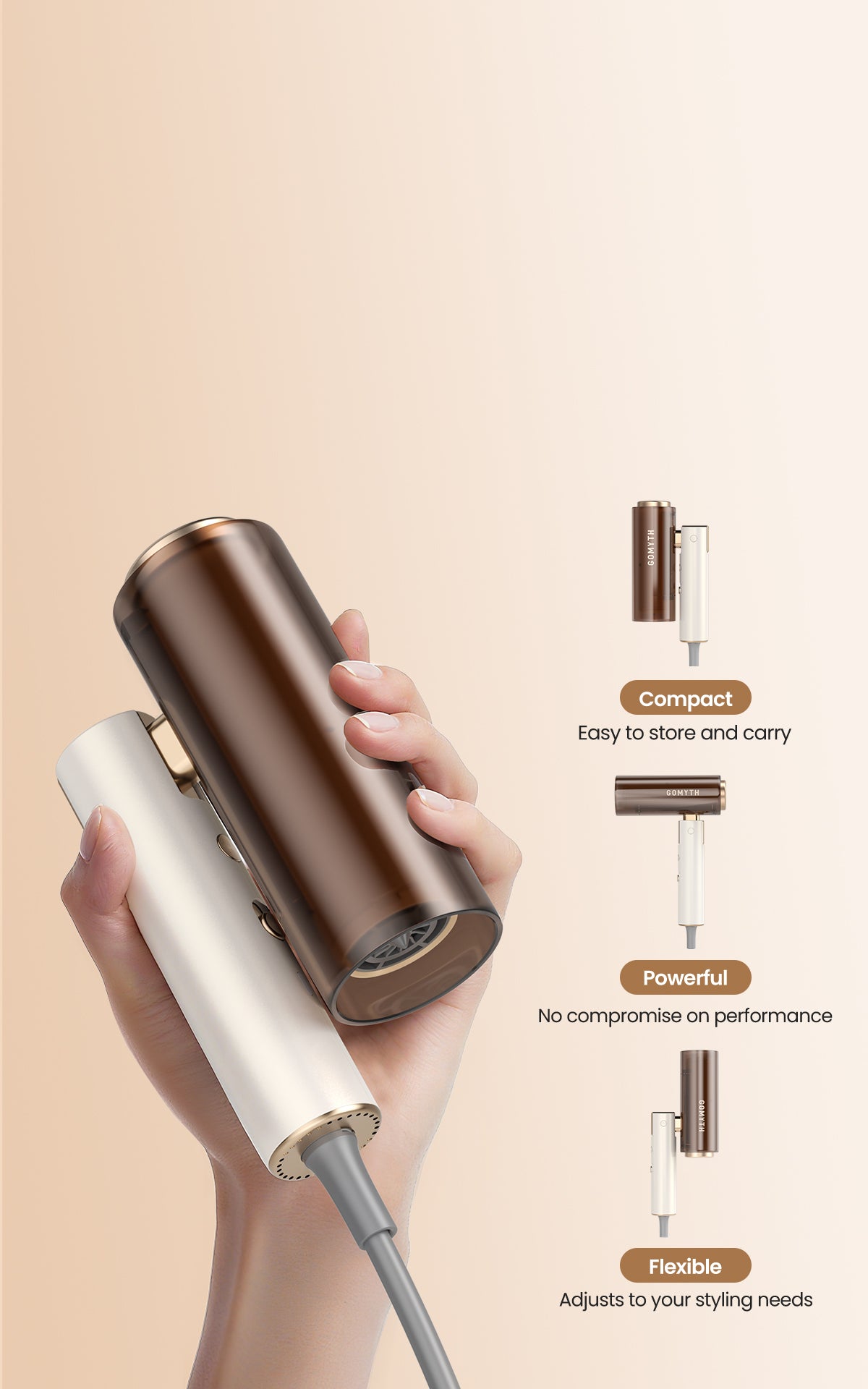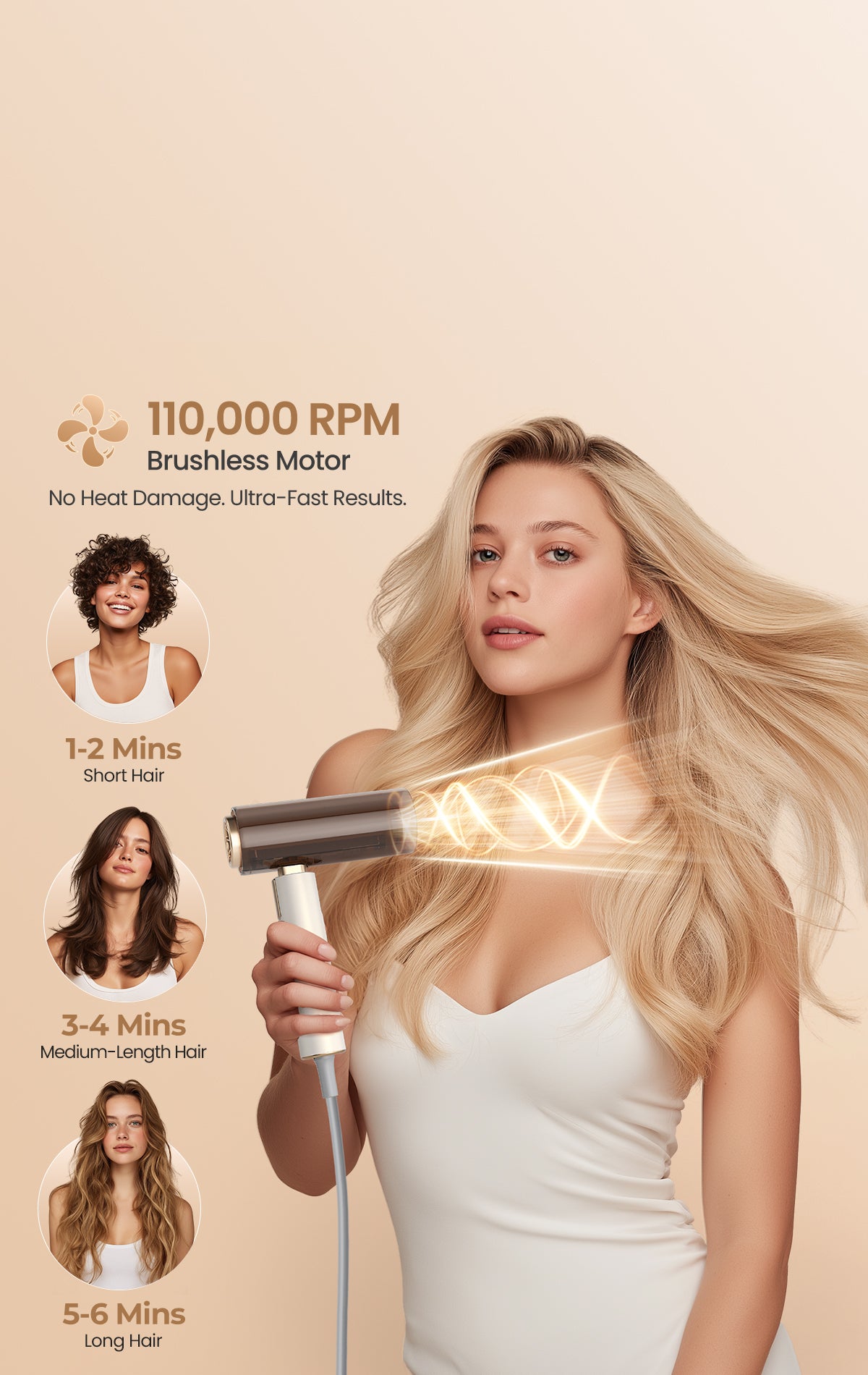 Powered by a 110,000 RPM brushless motor, the GOMYTH NovaCraft S1 delivers strong airflow for lightning-fast drying without heat damage. Enhanced with a built-in temperature sensor, it automatically senses and regulates the temperature to safeguard your hair from potential, irreversible heat damage. Perfect for busy mornings or quick touch-ups before meetings or events, it leaves hair smooth, shiny, and healthy in minutes, letting you get ready faster without compromising hair quality.